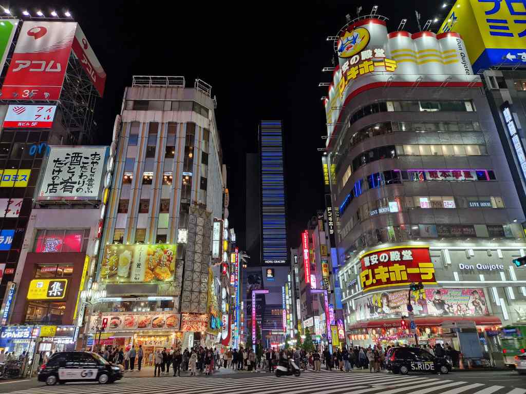 Having rested for a bit, I continued my way to Harajuku metro station. It was now rush hour and it was very crowded, but still people queued patiently to get in, and then again on the platform to get on a train. I arrived back at Shinjuku station as night was falling to find the area completely transformed. The streets that had been quiet were now packed with people setting off for an evening of fun in the countless bars, restaurants and lounges of the area. Huge neon displays – some very original – shone down from the tall buildings.