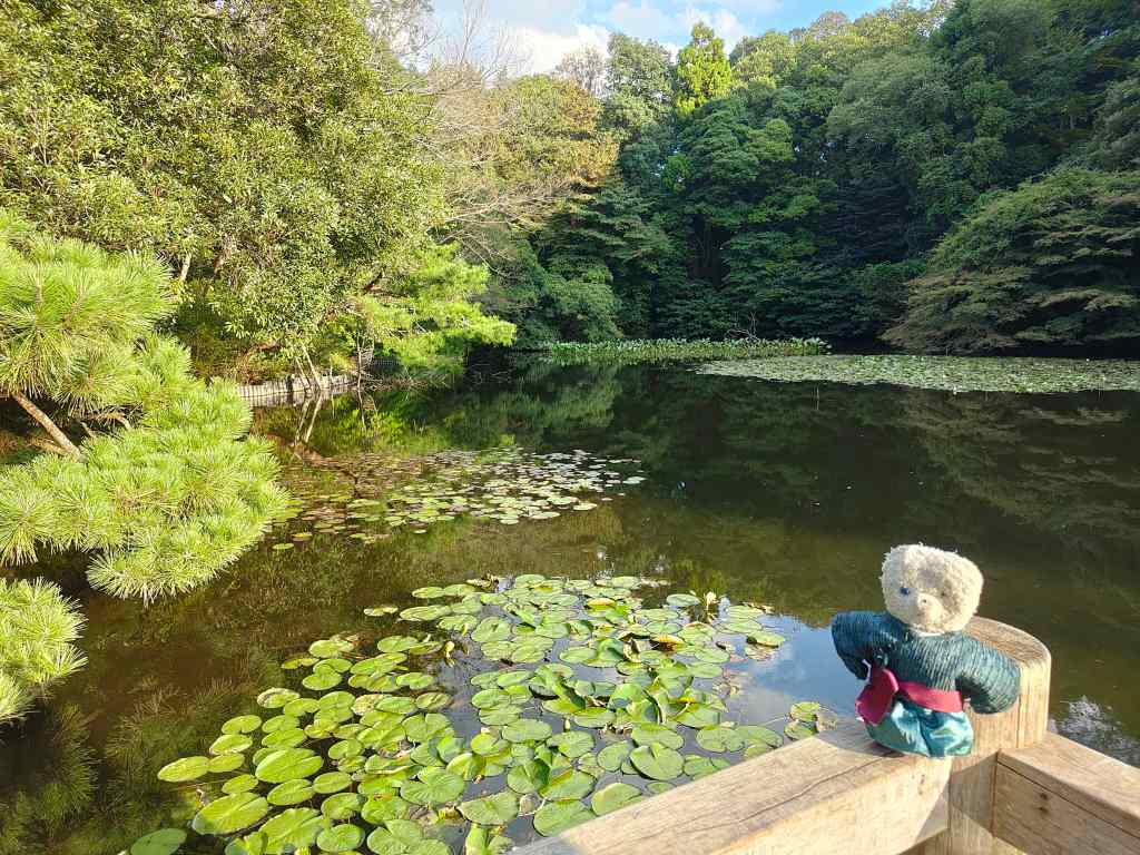 I headed away from the shrine towards the main Harajuku gate in the south, along a path with a constant stream of people heading both ways. To escape the crowds for a bit I ducked into a pretty garden with a pond.