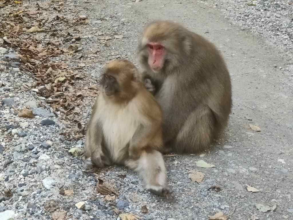 When we finally decided to move on from our idyllic spot, the path continued along a raised walkway through a green forest, where we met some monkeys. They ignored us as they strolled on, not even bothering to beg for food – they knew that in well-disciplined Japan, no one would feed them.