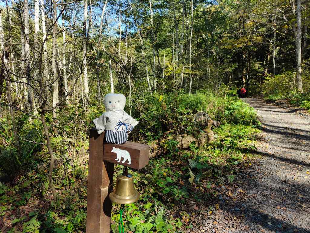 Our walk took us along the bank of the river. We met many other hikers coming the other way, most of whom were Japanese. They greeted us with a smile and a cheery “Konnichiwa” (hello). Many of them were wearing little bells that jangled as they walked, to deter bears. In my opinion no self-respecting wild bear would go anywhere near a path with so many humans passing along it, and the continual jangling annoyed me a bit. The obsession with bears seemed to be deeply felt, and the park authorities had also put up lots of warning signs and occasional bear bells along the path for additional protection.