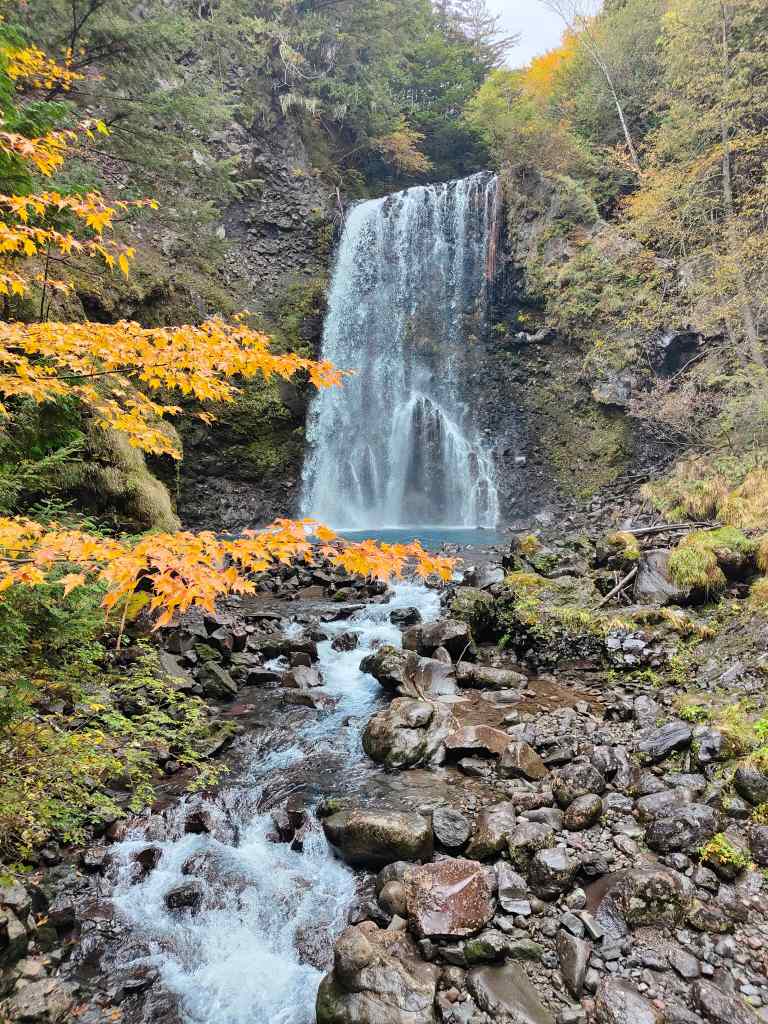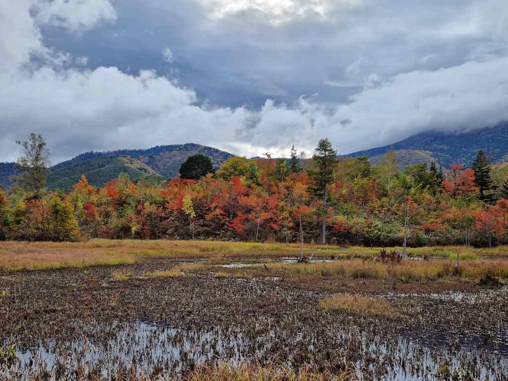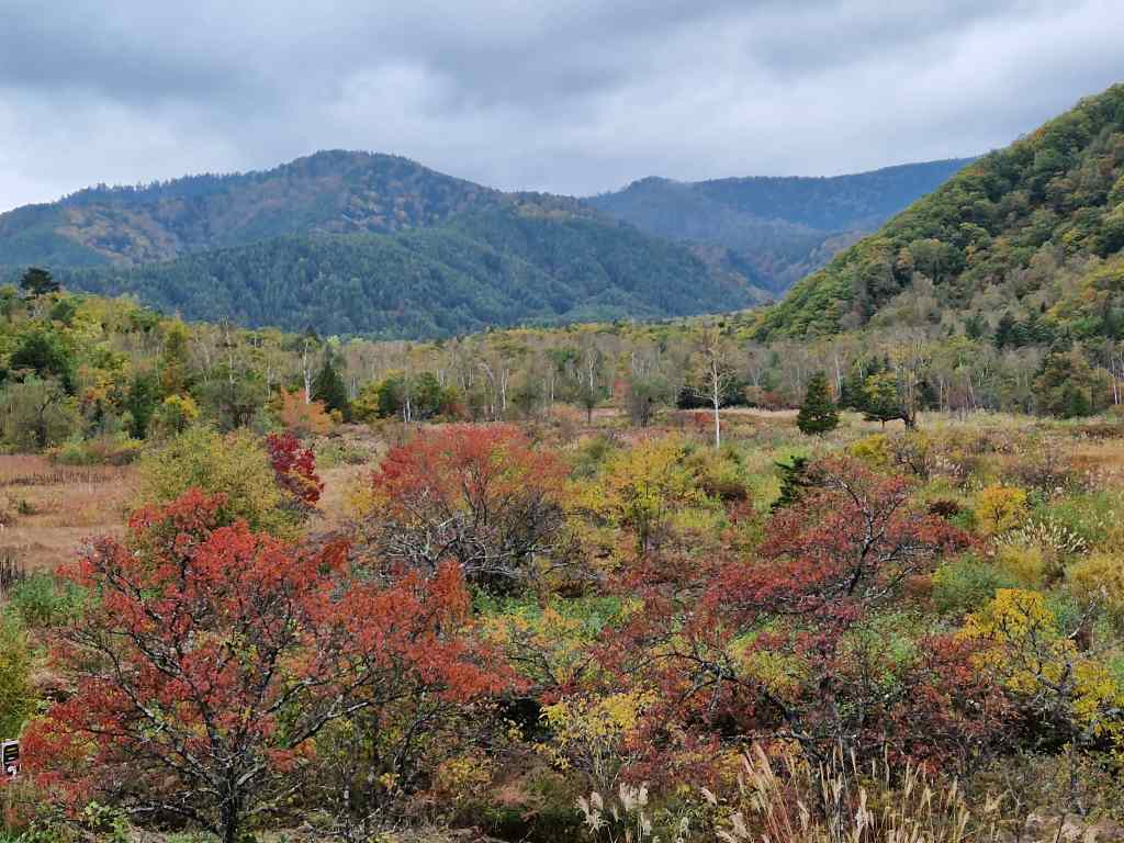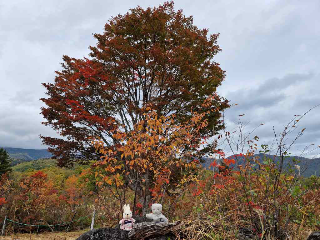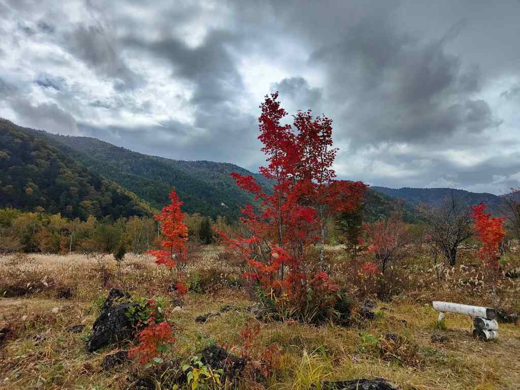 Today was one of those wonderful days when a traveller discovers something for themselves. Our original plan was to drive to the Japanese Alps, and then take a bus/cable car to Mount Norikura, Japan’s third highest volcano. However, when we got into the mountains, it was cloudy and we thought that we would not see anything at the top. As we wondered what to do, Aki noticed a small sign with a picture of a large, bright red maple tree, so we followed the direction it indicated and found ourselves driving through a beautiful meadow, with nature’s autumn colours on full display – but this time with the red that we had been missing during our walk at Kamikochi.