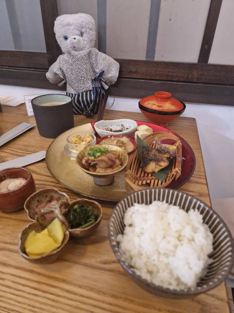 Today the weather forecast was for heavy rain, and so we decided to visit Matsumoto, the small city we had chosen as a base for exploring the Japanese Alps. First we had a big traditional Japanese breakfast.