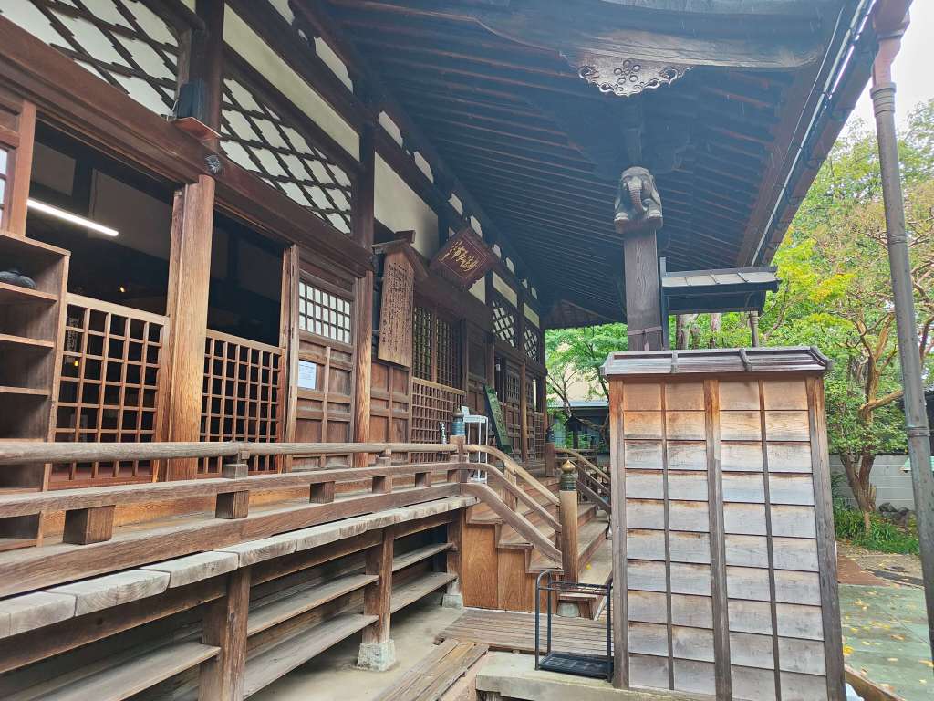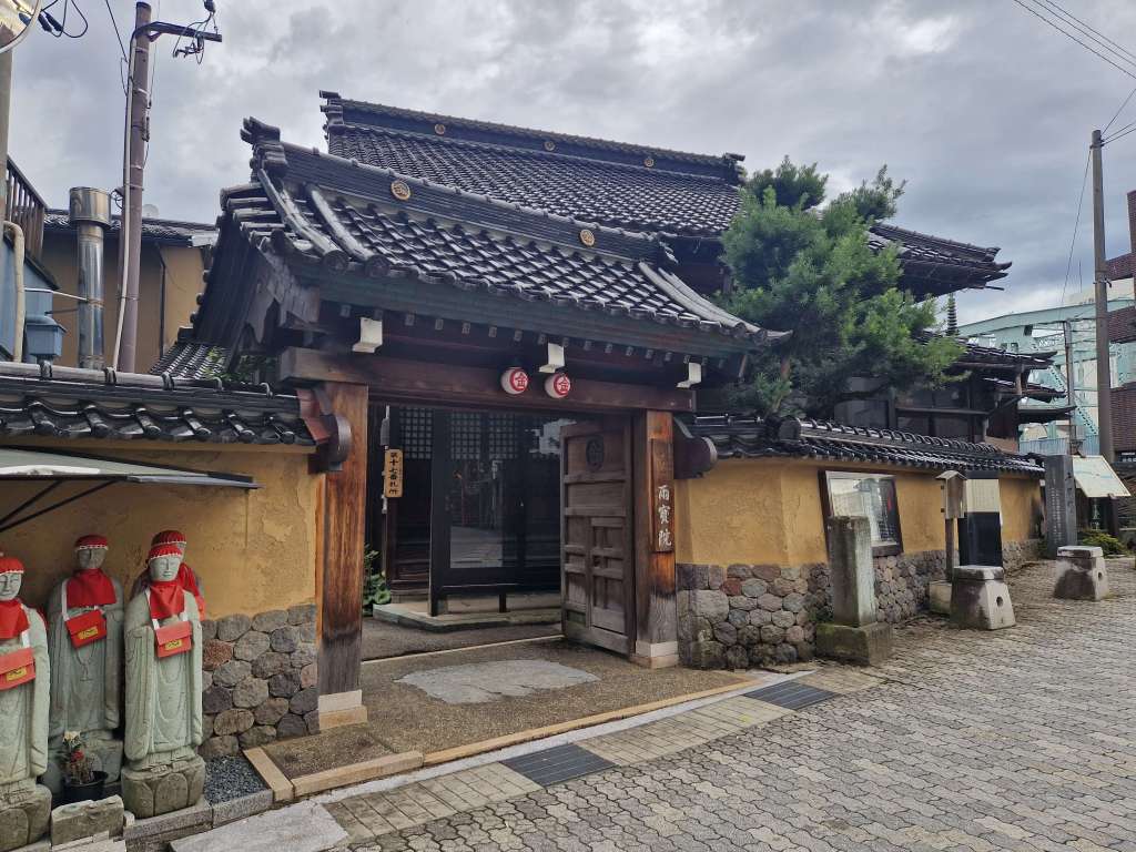 In the afternoon, we explored one final part of the city, a short bus ride away on the other side of Kanazawa’s river – the Teramachi Temple District. We found dozens of small temples located either on the main road or down quite side streets. We ended up outside one of the largest ones, the Myoryuji Temple, more often known by its nickname of “Ninja Temple”. There were signs saying that guided tours could be booked by telephoning to make a reservation or by applying to the temple office. This seemed rather strange – temples are usually free to visit – and we wondered if it was a tourist trap. We decided to give it a chance and were put on a tour leaving immediately. It was one of our best decisions of the holiday.