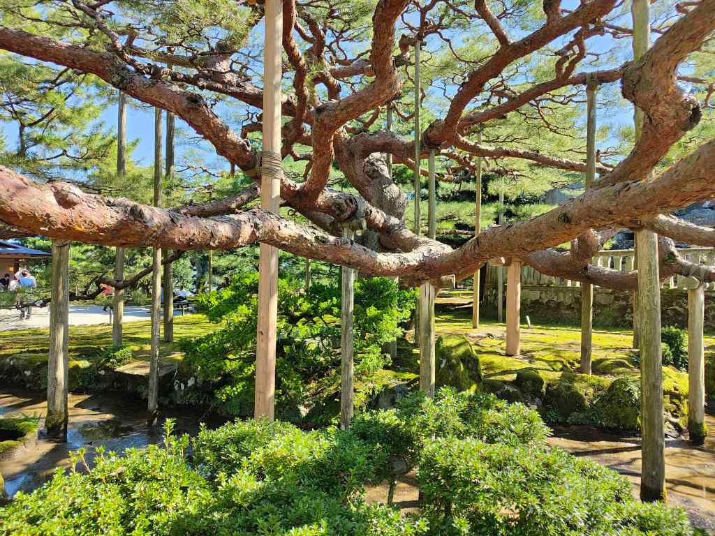 Our first stop was one of the city’s main attractions – the Kenrokuen Gardens. They were rather different to places like Kew Gardens that we knew from elsewhere in the world – very neat and ordered, as if in Japan nature is also elegant and tidy. It was a beautiful sunny day, so they looked at their best.