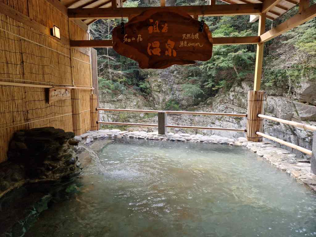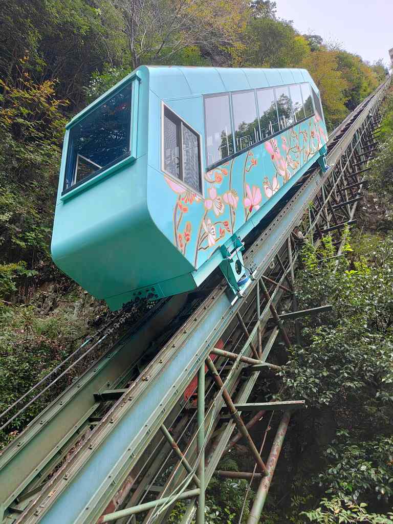 We made one stop at a hotel to try their onsen, located at the valley floor far below. Access was via a cable car, and once there Aki and I both had our respective female and male baths to ourselves. The setting was idyllic, and since the water temperature was not too hot, we stayed for an hour enjoying the view.