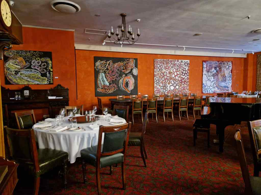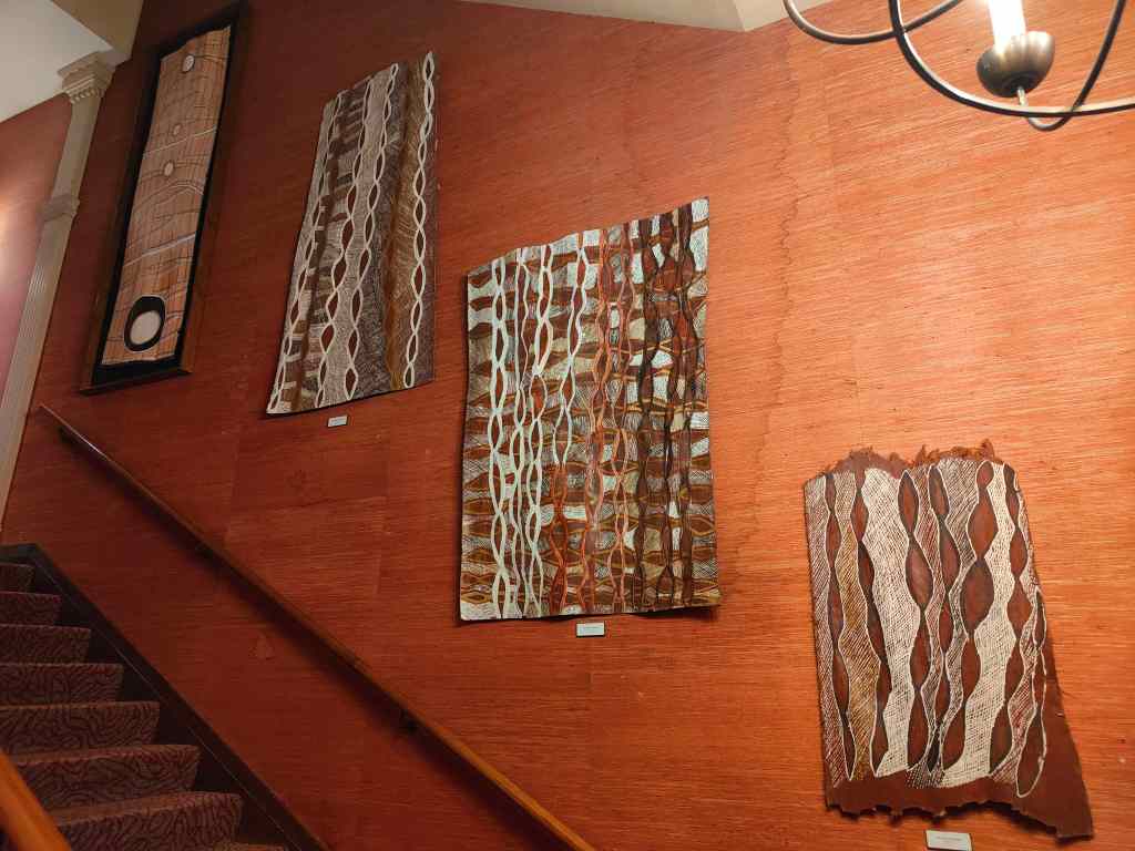 In addition to the usual elegant sitting rooms, dining rooms and bar, the UUSC had a small art collection that I admired with a glass of club wine in my paw.