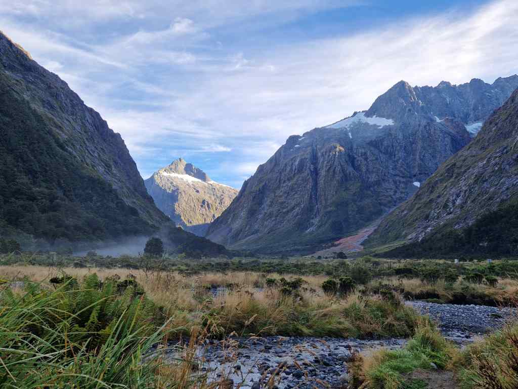 However, my main reason for coming to Te Anau was not glowworms. The town is one of the main access points to New Zealand’s Fjordland National Park, and in particular to Milford Sound, one of the world’s most famous scenic spots. This “sound” is more accurately called a fjord, since it is a long, deep inlet of the sea, with very steep walls, formed millions of years ago by the action of glaciers. It is possible to visit the area on a very long day trip from Queenstown, but I preferred to not to be in a rush and to have more time to explore. I had booked an 11.15 boat trip along Milford Sound, wanting to avoid the midday rush, when lots of tour groups arrive from Queenstown. I set off early along the Milford Road that leads to the fjords. It was incredibly beautiful, but on the way there I only had time to make a couple of stops.