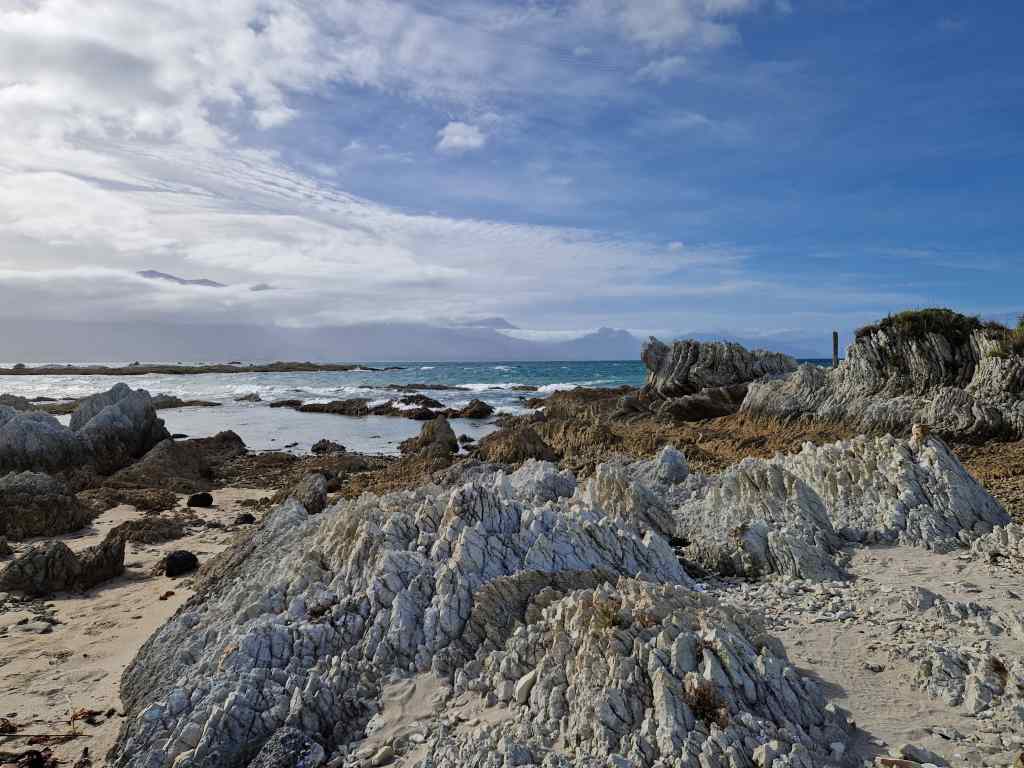 Refreshed, I completed the rest of the day’s driving, checked into my hotel and spent the late afternoon wandering around Kaikoura’s wild peninsula, which was raised nearly two metres from the sea during a recent earthquake. There were views over the bay to far-off mountains……..