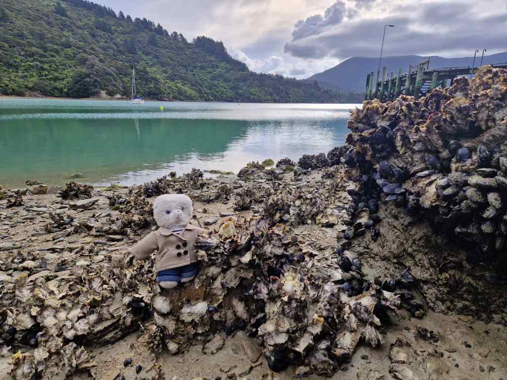It was a beautiful, utterly remote and so laid-back that the hotel did not give guests room keys – this part of rural New Zealand has so little crime that people do not bother to lock their doors. It was just a shame that the sky remained overcast, and the sea water which was bright blue in my guide book remained a dull grey. It was possible to go hiking or to hire kayaks or paddleboards to explore the Sounds, but the weather did not inspire me to try any physical activities and instead I explored the beach a bit, where I found some wild oysters……