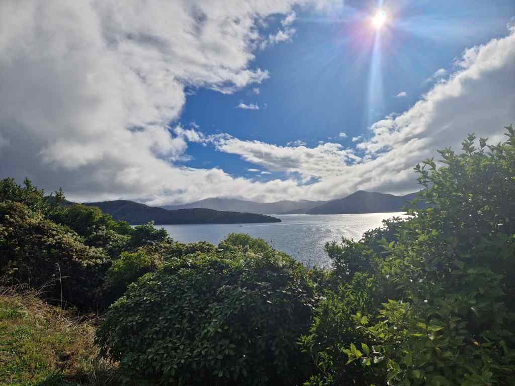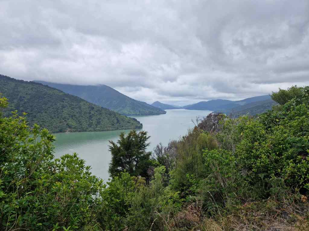 So far, most of my posts have covered one day of travelling. This post will cover four days visiting two of New Zealand’s highlights – the Marlborough Sounds and Abel Tasman Park. There is a simple reason why two such memorable places get so little text – the weather was awful, and two of these days were almost completely washed out. After my whale-watching flight in Kakoura, I headed north to the tip of the North Island. State Highway One was scenic, with nice sea and mountain views, but slow going, with more than its usual share of roadworks. I reached Blenheim, the capital of Marlborough’s wine country, in the early afternoon. I thought about visiting the city for a coffee break, or even the famous nearby Cloudy Bay winery for a tasting, but Blenheim’s outskirts were so ugly that I hurried on to Picton on the north coast, the entrance point to the Marlborough Sounds.