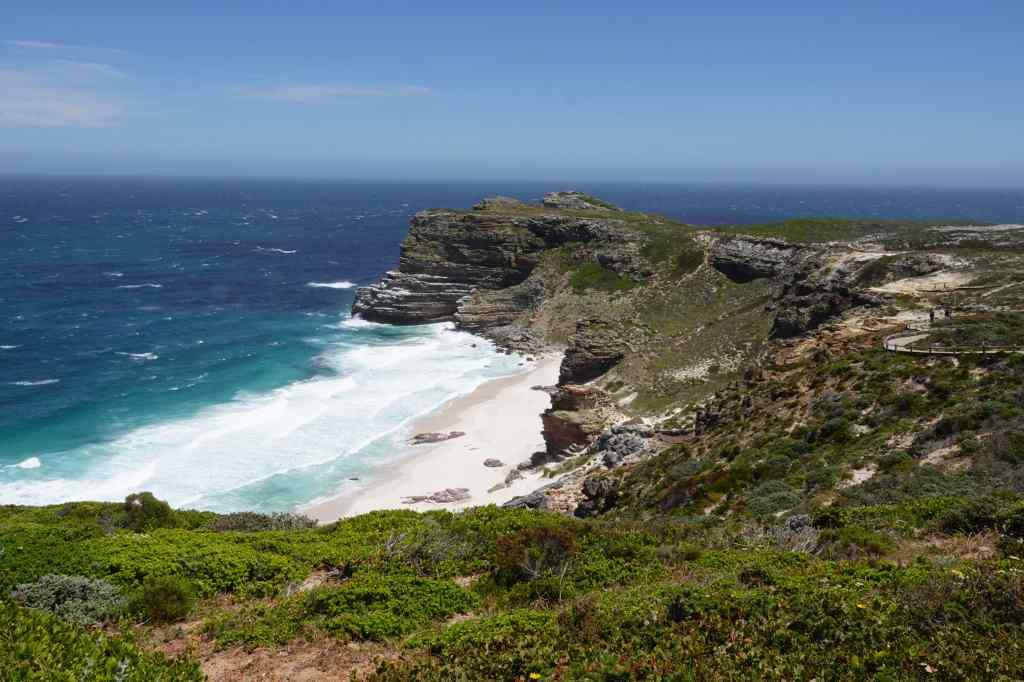 To my left, miles and miles of stunning coastline presented itself in a 180-degree arc, first heading east and then further south – the southernmost point of Africa is in fact not Cape Point but Cape Agulhas, about 180km to the east. The Indian and Atlantic Oceans meet between these two capes.