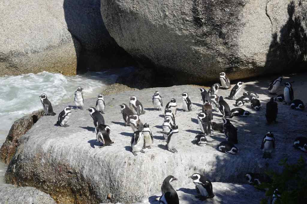 After my close shave, I drove north for one last visit – to the penguin colony at Boulders. The site was very busy with penguins – and tourists. Visitors had to stay on a wooden walkway which went right over the beach where the colony was living. This allowed me to observe the birds much more closely than had been possible in Namibia and to take some great photos, albeit at the cost of having to endure a much more “touristy” experience with crowds of tour groups.