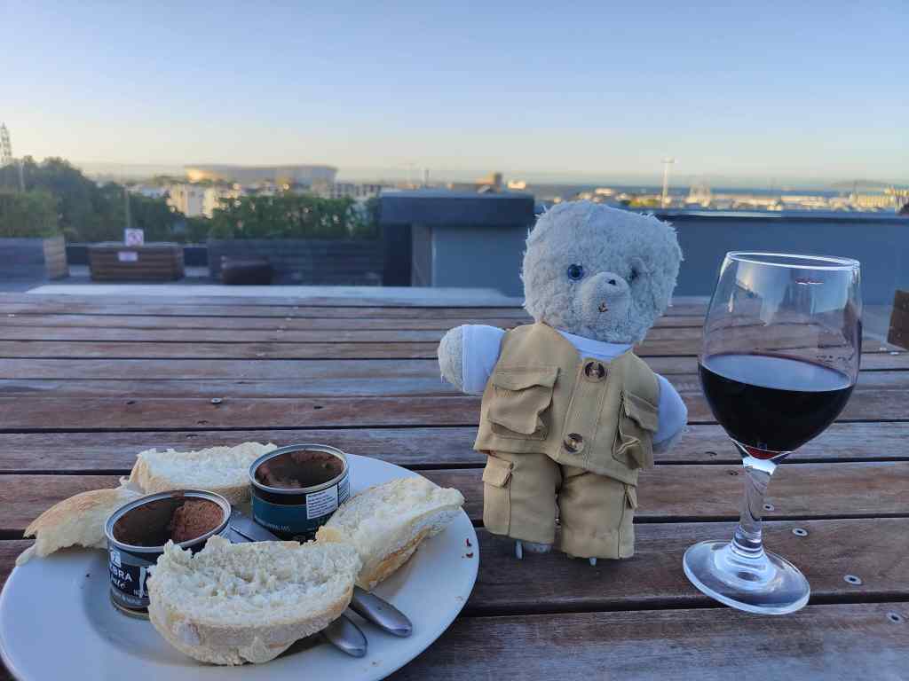 I walked through to the west end of the garden, where there was an open area, with a few monuments and the national art gallery. There were also a lot of homeless people stretched out on the grass. As the sun began to set, the shadows in the gardens lengthened. A sudden transition occurred. The happy, relaxed crowd I had seen earlier rapidly disappeared leaving behind the homeless and beggars. The remaining visitors walked faster, and looked around frequently. I followed suit, and walked quickly back to my hotel via the local shop, where I brought some excellent springbok paté and wine for dinner. I ate this on the roof terrace of my hotel, contemplating the day’s events, and my good fortune in life compared to many of the other people I had seen today.