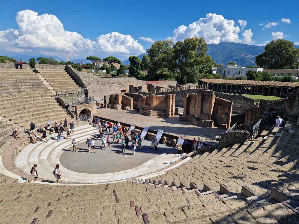 Pompeii has a long history and was settled by various peoples but is best known as the prosperous Roman provincial town which was buried by the eruption of nearby Mount Vesuvius in AD79. After this disaster it remained hidden under volcanic ash until the 16th century when it was rediscovered. Major excavations only started in the 18th century and were accompanied by looting of some of the site’s art works. In recent years the excavation of Pompeii has been carried out to high archaeological standards, and even today the site continues to offer up new surprises. This was actually my third visit to Pompeii; my first was 50 years ago when I was a little cub, and I don’t recall much of it. The second was in 2000 twenty five years ago, and I remember a site which impressed by its size but not always its beauty, with lots of long, dusty and empty Roman streets laid out in a grid. But Pompeii is possibly the world’s most famous archaeological site, so I decided to make a third visit, and was very glad that I did.
