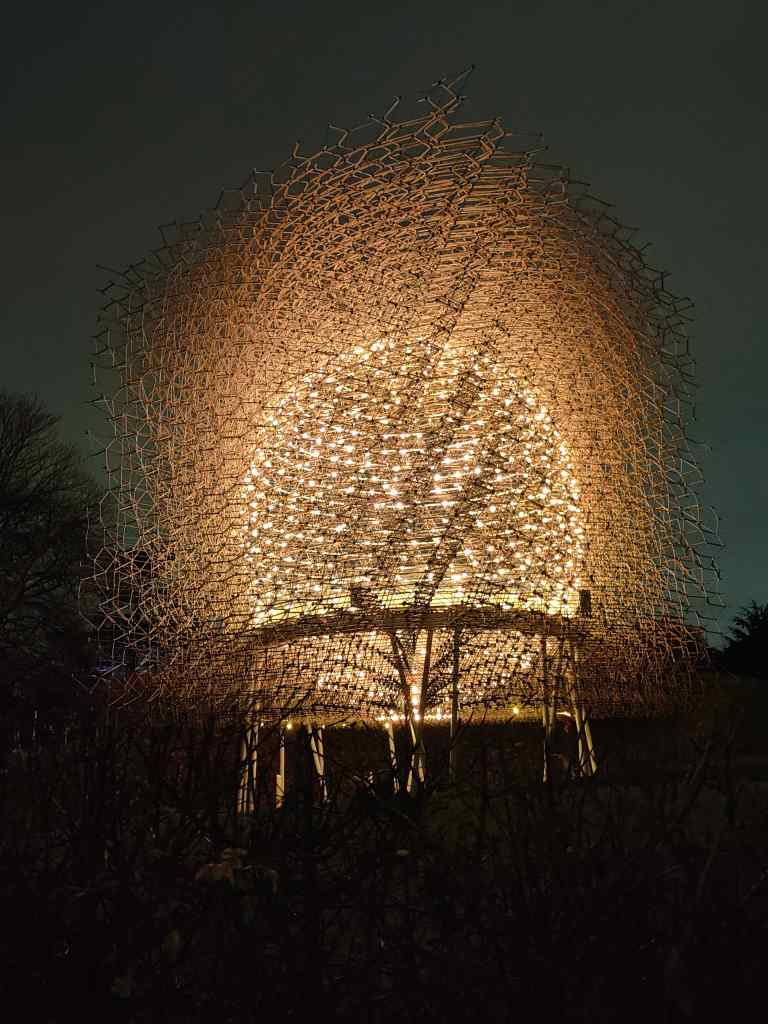 The Hive, lit up at night for Christmas at KewLight display, Christmas at Kew